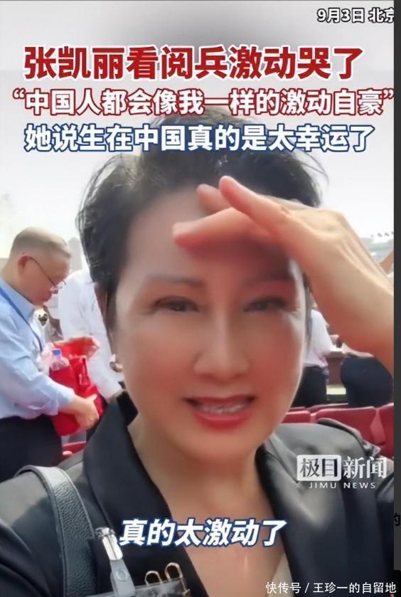 九三阅兵那天,张凯丽泪晒现场,她说相信大家和她一样激动自豪。她动情地说生在中国真的太幸运了。