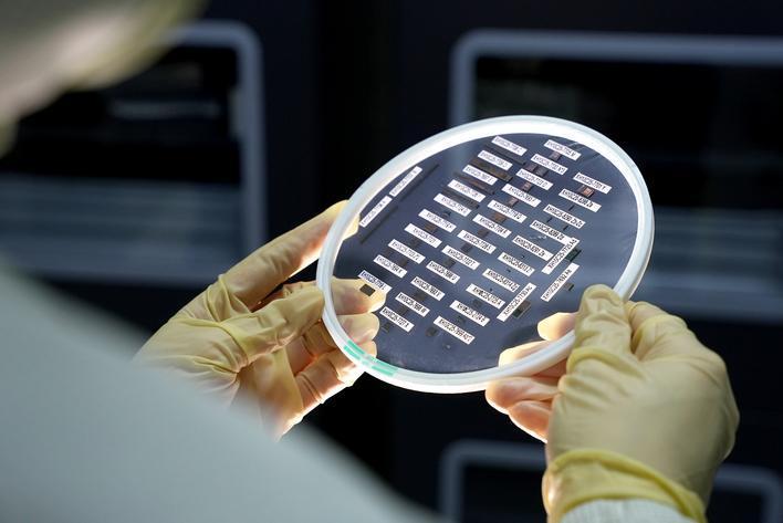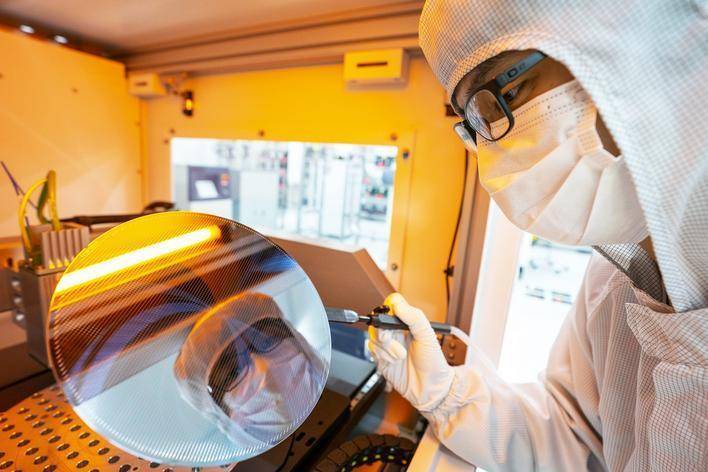 九峰山实验室,科研人员在检查芯片晶圆完整度。 (湖北日报全媒记者 魏铼 摄)