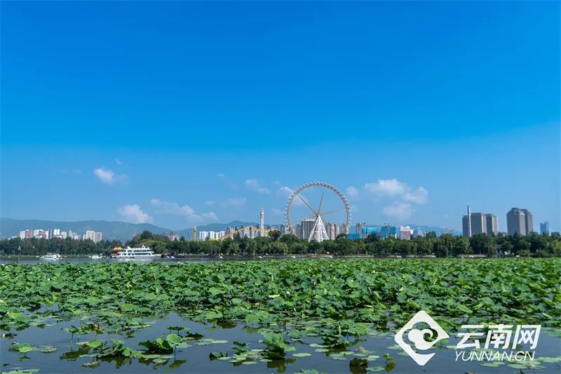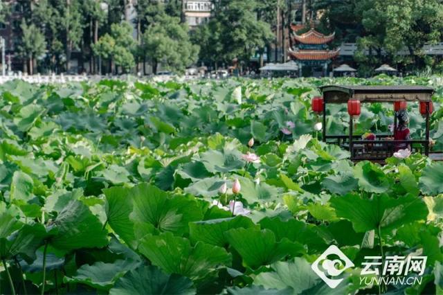 昆明翠湖、大观楼、庾园等公园里,微风裹着蝉鸣与荷香,漫过粼粼波光。