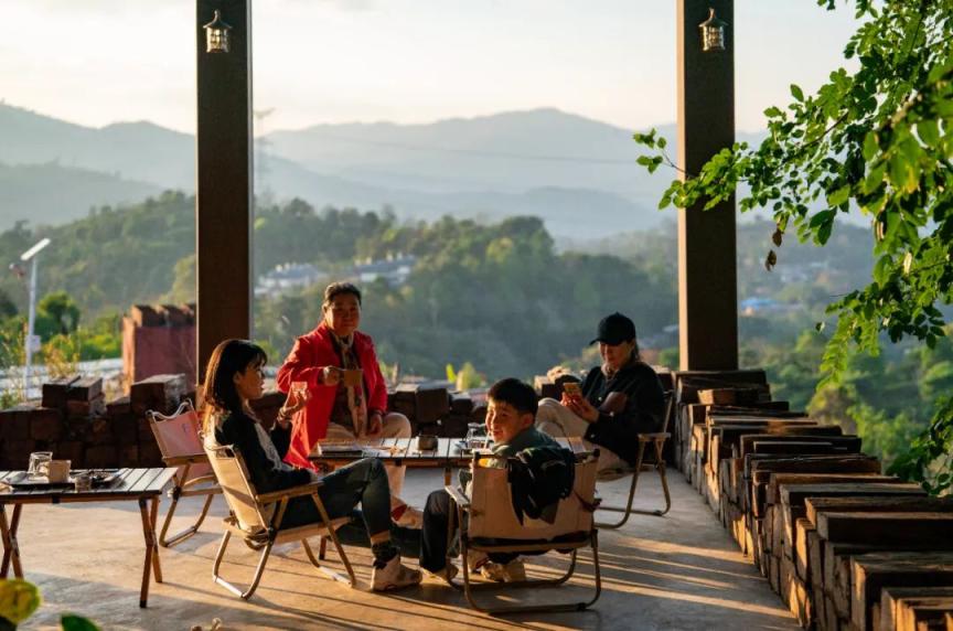 顾客在位于普洱市思茅区大开河的梅子咖啡庄园享受休闲时光。新华社记者 陈欣波 摄