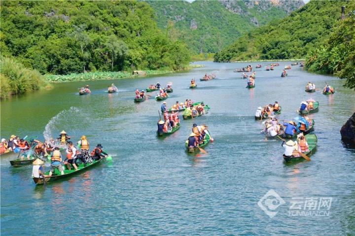 在文山丘北普者黑景区,一路泛舟赏景;浪潮翻涌,让水清凉的触感浸润全身,欢乐又尽兴。